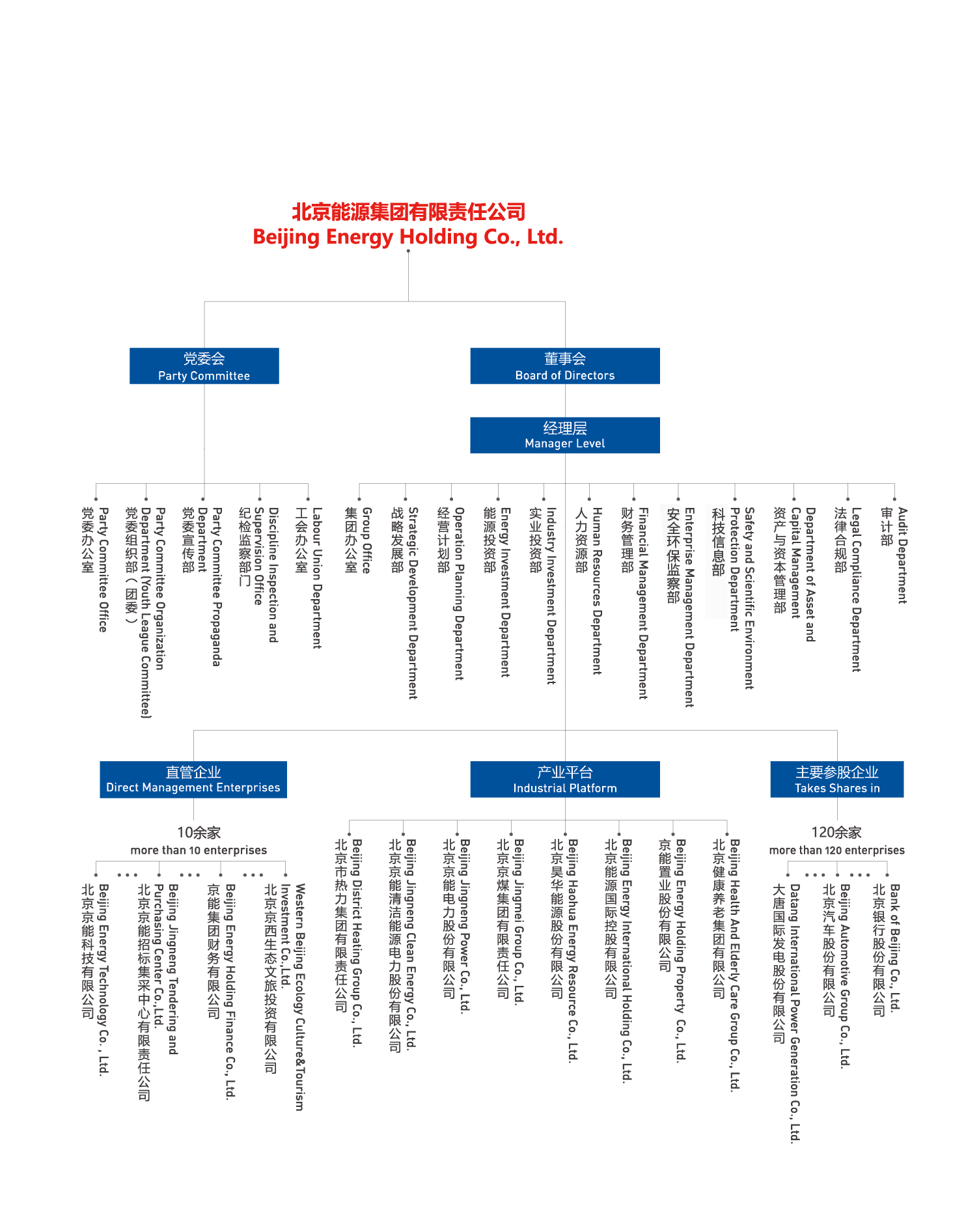 北京能源集團有限責(zé)任公司(以下簡稱“京能集團”或“集團”)是北京市人民政府出資設(shè)立的國有獨資公司,肩負著保障首都北京能源安全可靠供應(yīng)的重任。集團成立于2004年,由原北京國際電力開發(fā)投資公司和原北京市綜合投資公司合并而成,2011年、2014年先后又與北京市熱力集團有限責(zé)任公司、北京京煤集團有限責(zé)任公司實施合并重組,實現(xiàn)了產(chǎn)業(yè)鏈條融合互補。經(jīng)過多年的資源整合,集團由單一能源產(chǎn)業(yè)發(fā)展為熱力、電力、煤炭、健康文旅等多業(yè)態(tài)產(chǎn)業(yè)格局。2024年底,集團資產(chǎn)規(guī)模達4934億元,年營業(yè)收入975億元,全資及控股企業(yè)860余家,參股企業(yè)120余家,擁有員工3.4萬余人,投資區(qū)域遍布全國33個省市區(qū)以及海外,控股京能清潔能源、京能電力、昊華能源、京能置業(yè)、北京能源國際、京能熱力六家上市公司,盈利水平長期穩(wěn)居北京市屬企業(yè)前列。2024年在中國企業(yè)500強排名第247位,中國服務(wù)企業(yè)500強排名第87位。